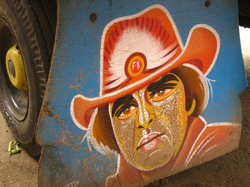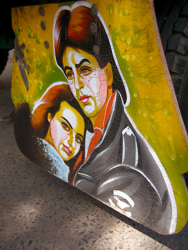 Painted mud-flaps of rickshaws & cycle carts in Ahmedabad, Gujarat, India.